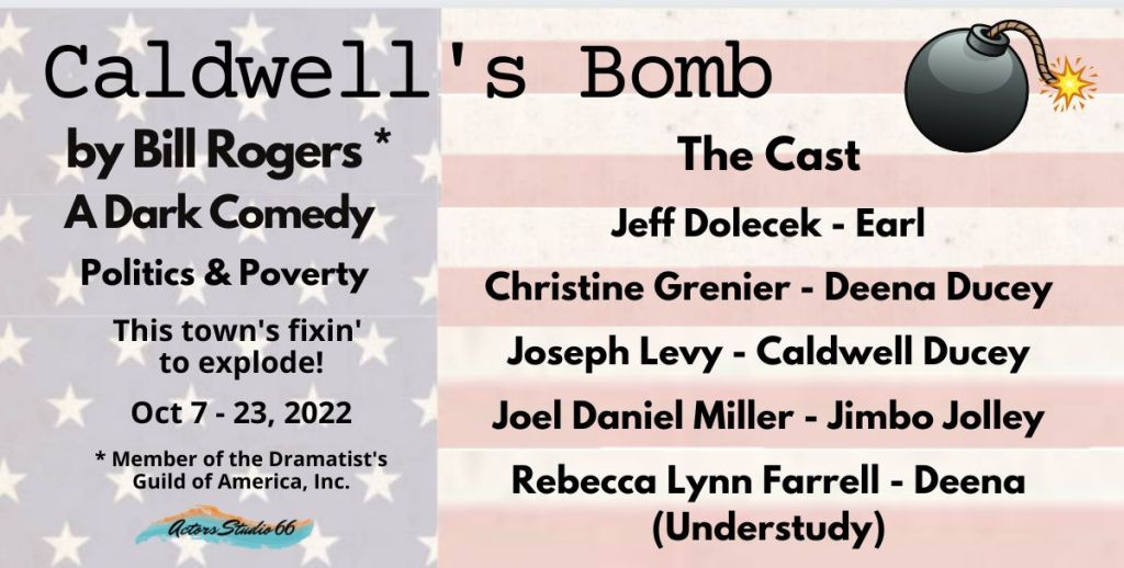 Actors Studio 66 in Albuquerque, New Mexico has chosen to lead off its second season with my dark comedy, Caldwell’s Bomb. It will run from October 7-23 for twelve performances at the Black Cat Cultural Center. Herman Johansen will direct. I’ll send more details when they become available. https://www.actorsstudio66.org